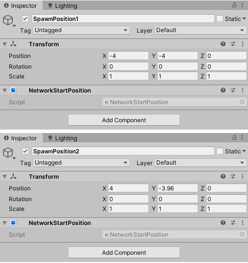 Trước tiên, chúng ta cần tạo một Đối tượng trò chơi mới để làm vị trí xuất hiện của chúng ta và đặt nó vào vị trí xuất hiện mong muốn. Sau đó, chúng ta thêm thành phần NetworkStartPosition vào nó.
