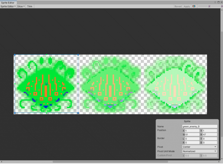 Trong Sprite Editor (hiển thị bên dưới), bạn cần mở menu lát cắt và nhấp vào nút Slice với loại lát cắt là tự động. Cuối cùng, nhấn áp dụng trước khi đóng.