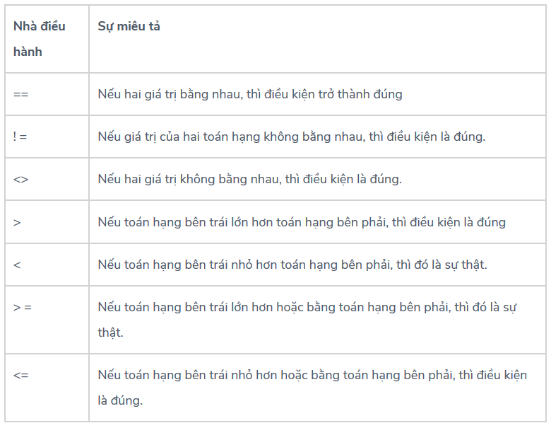 - Toán tử quan hệ