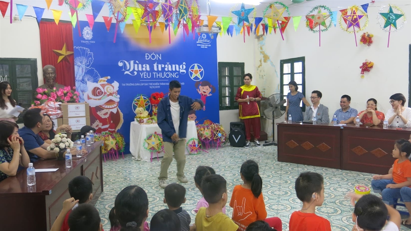 Chương trình được tổ chức vào chiều ngày 10/9 do Đoàn thanh niên Trung tâm đào tạo CNTT, Đoàn phường Thanh Xuân Bắc, Tràng Tiền Plaza, Thương hiệu bánh ngọt Laetitia phối hợp với Trường PTCS dạy trẻ khiếm thính Nhân Chính Hà Nội tổ chức.