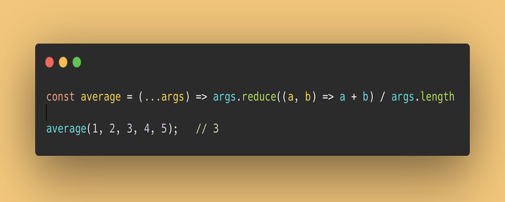 const Average = (... args) => args.reduce ((a, b) => a + b) / args.length;trung bình (1, 2, 3, 4, 5); // 3