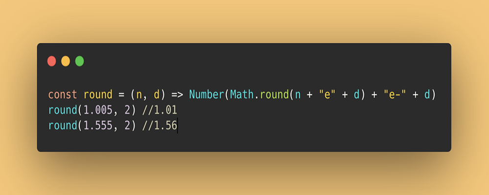 const round = (n, d) => Number(Math.round(n + "e" + d) + "e-" + d)round(1.005, 2) //1.01