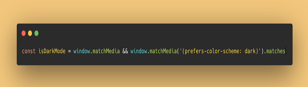 const isDarkMode = window.matchMedia && window.matchMedia('(prefers-color-scheme: dark)').matches