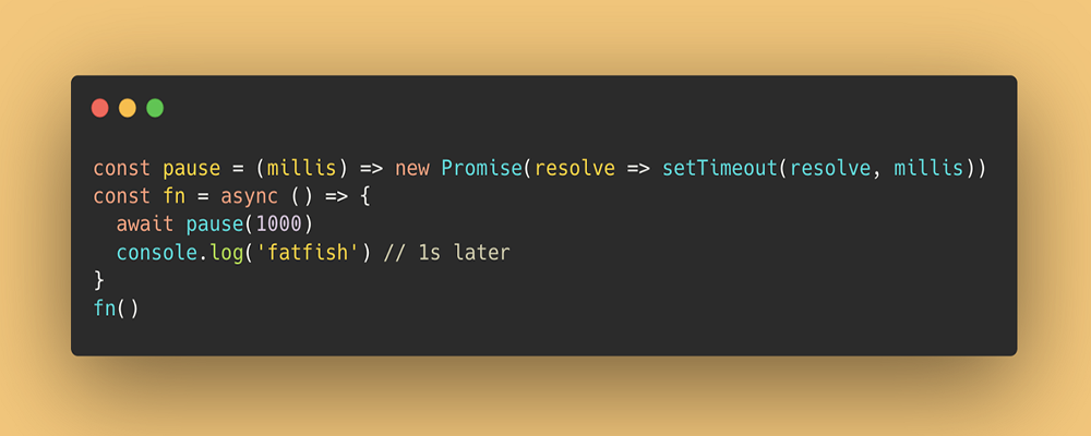 await pause(1000) console.log('fatfish') // 1s later