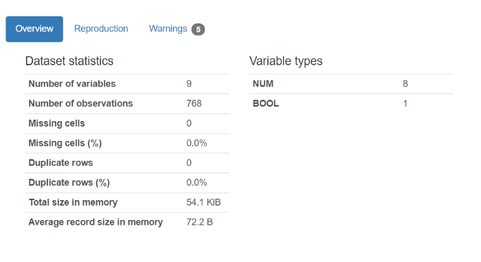 Để tìm ra thông tin được cung cấp ở trên, chúng ta cần chạy một vài dòng mã, nhưng sẽ dễ dàng hơn nhiều nếu sử dụng Pandas Profiling