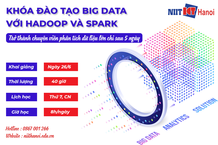 Là một trong những đơn vị đi đầu về đào tạo lập trình viên tại Hà Nội, NIIT-ICT Hà Nội đã đưa Big Data về phổ biến và đào tạo từ năm 2017. Khóa học Big Data với Hadoop và Spark hoàn toàn được cập nhật liên tục định kỳ hàng năm theo chương trình mới nhất bản quyền NIIT Ấn Độ được giảng viên của ICT Hà Nội biên soạn lại đào tạo cho các cá nhân hoặc dự án do doanh nghiệp order