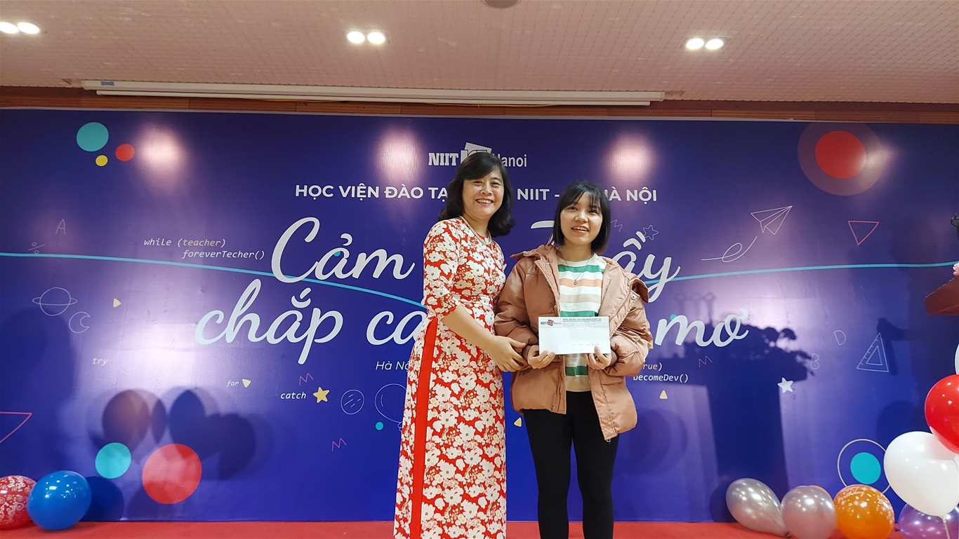 Cô Trần Thị Hải Yến - PGĐ Học viện tặng quà cuộc thi