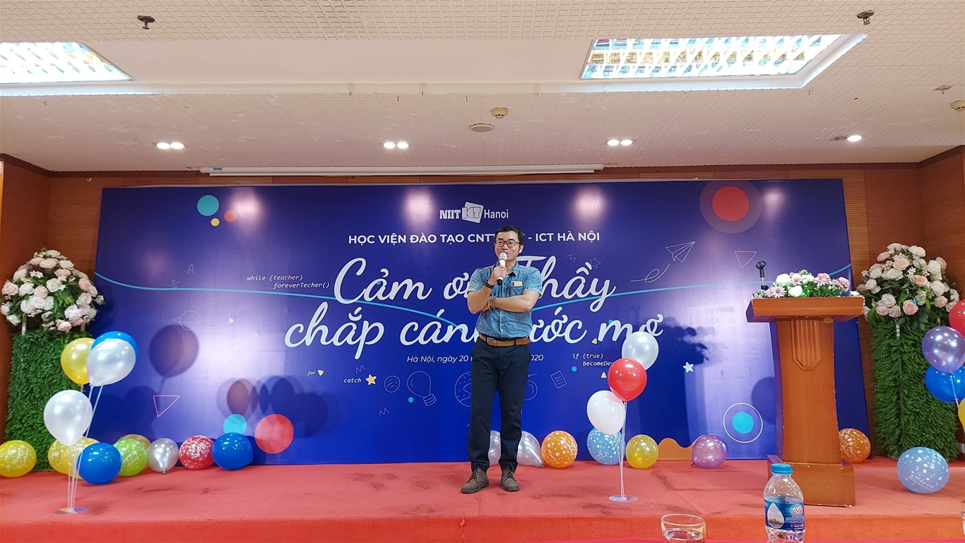 Hòa trong không khí cả nước kỷ niệm 38 năm ngày Nhà giáo Việt Nam (20/11/1982 - 20/11/2020), sáng ngày 17/11/2020 tại Hội trường tầng 3, tòa nhà 25T2, đường Nguyễn Thị Thập, học viện NIIT-ICT Hà Nội long trọng tổ chức chương trình văn nghệ tôn vinh công ơn cao quý của các Thầy cô. Tham dự chương trình có sự góp mặt của BGĐ Học viện cùng các đại biểu, khách mời: