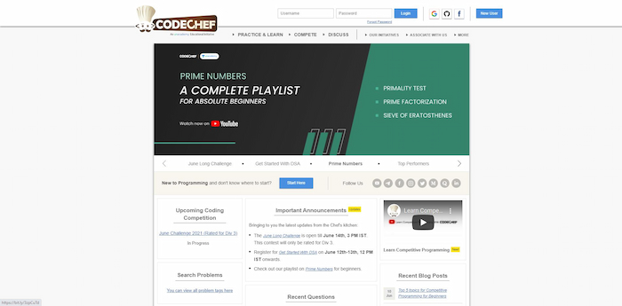 CodeChef là một nền tảng khác được thiết kế cho những ai muốn học và có kỹ năng về thuật toán, lập trình nhanh, cấu trúc dữ liệu và các cuộc thi khác liên quan về lập trình.