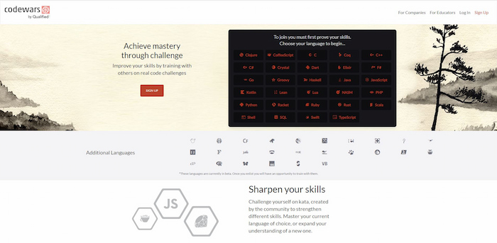 Codewars là một cổng học tập trực tuyến khác do cộng đồng sáng lập để đáp ứng nhu cầu của những người mới học lập trình. Nó bao gồm một số các thử thách được gọi là “Kata”. Đây là một từ tiếng Nhật diễn tả một đội hình của các chiến binh khi họ chuẩn bị xông lên tấn công kẻ thù.