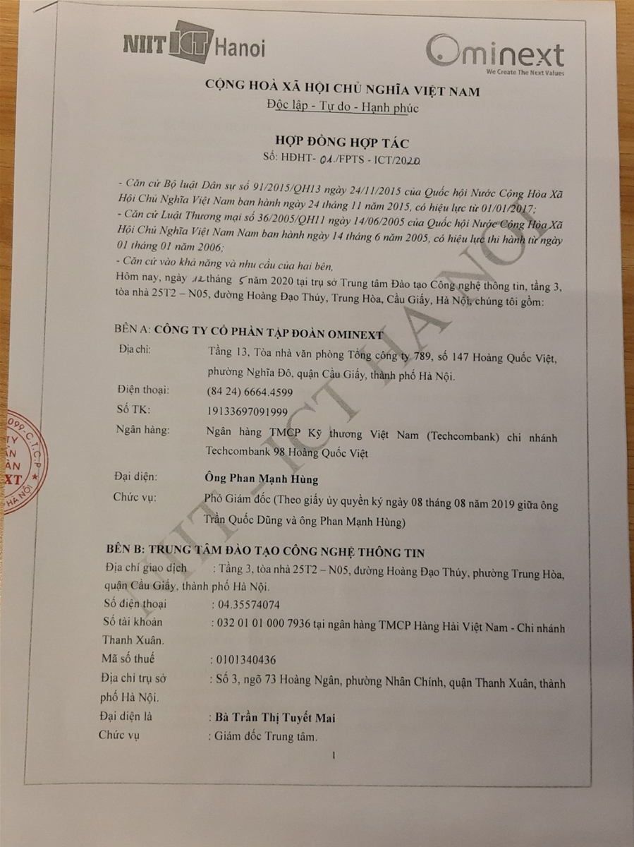 Trong quá trình phát triển của mình, Ominext liên tục cần đội ngũ nhân sự có chất lượng về các mảng như PHP, Java, Android, .NET... đội ngũ tuyển dụng cũng đã khảo sát các đơn vị đào tạo và quyết định hợp tác cùng NIIT-ICT Hà Nội trong việc đào tạo và cung ứng nguồn nhân sự lập trình. Chính vì bề dày hoạt động, kinh nghiệm đào tạo (18 năm) của ICT Hà Nội mà Ominext hoàn toàn tin tưởng về chất lượng đầu ra. Quá trình xây dựng chương trình học tại ICT Hà Nội, bản thân công ty Ominext đã cử chuyên môn sang tham dự và có những đóng góp vào chương trình nhằm đưa tới người học những kiến thức sát với thực tế nhất.