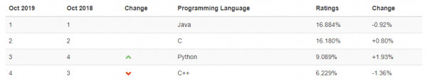 Chỉ số TIOBE cho tháng 10 năm 2019