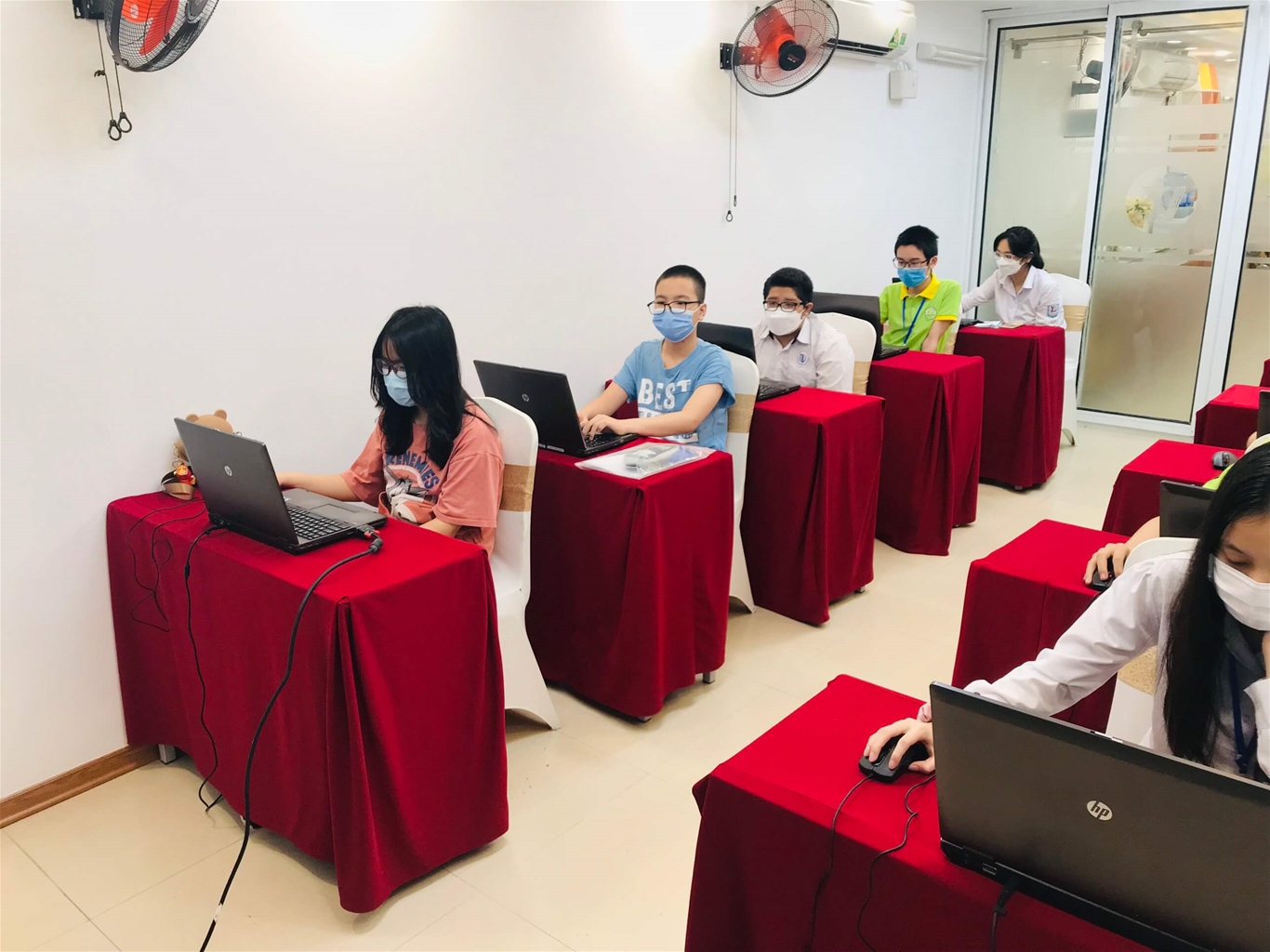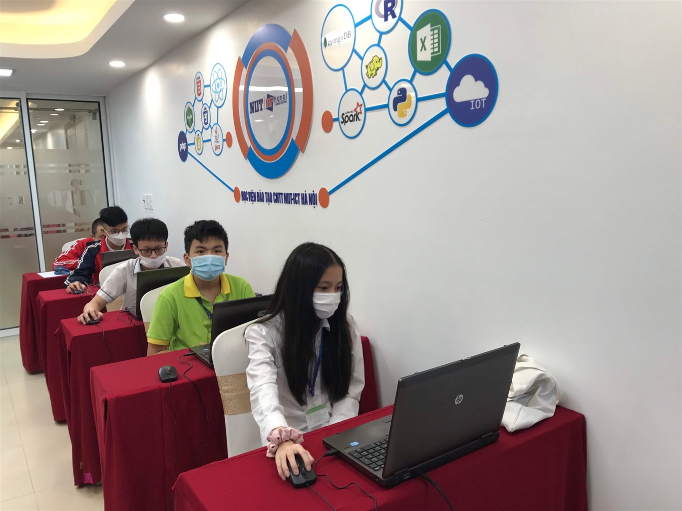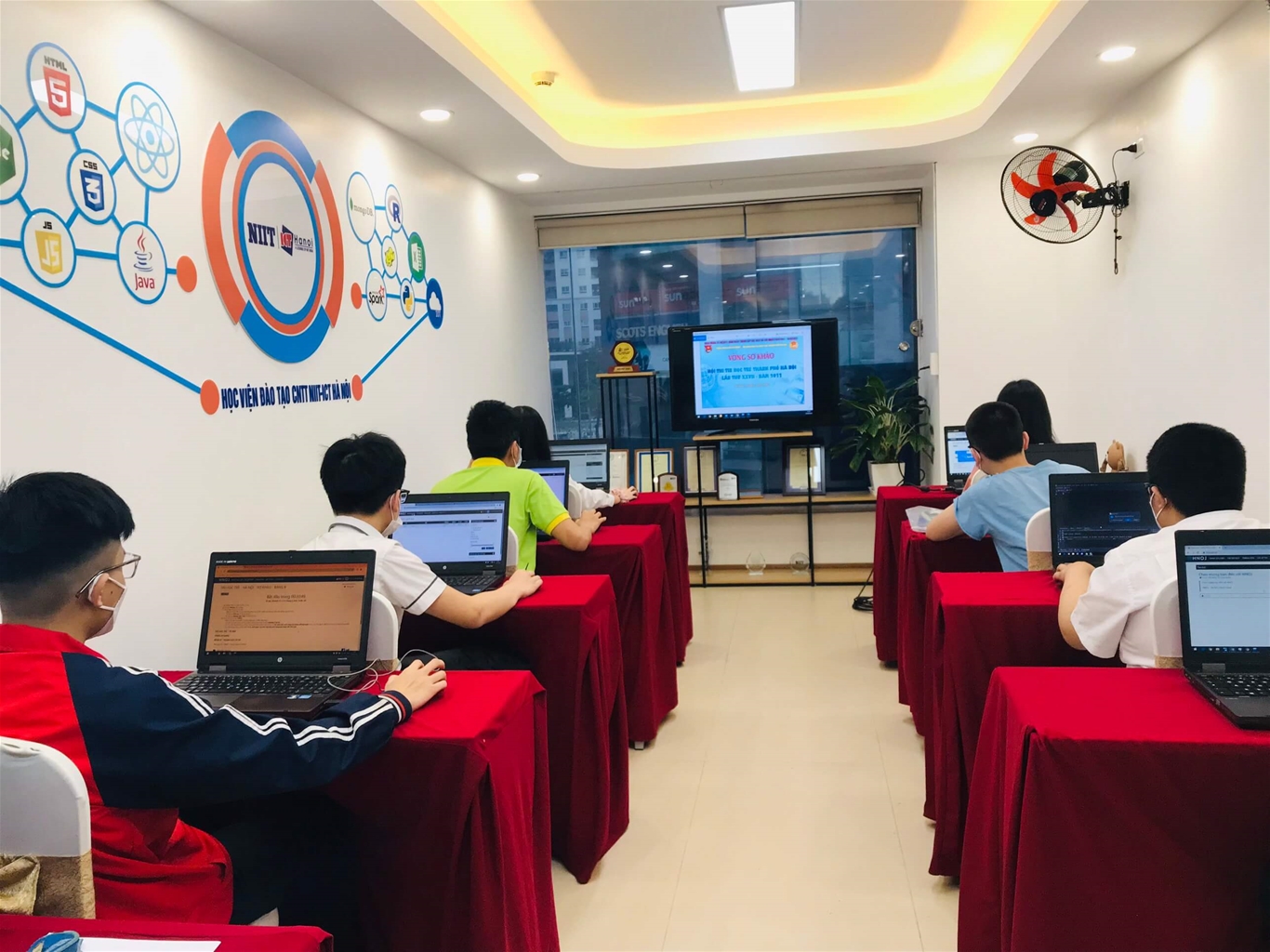 Nhận được thông báo của ban tổ chức cuộc thi thuộc quận Thanh Xuân trước 1 ngày, NIIT ICT Hà Nội đã nhanh chóng setup phòng thi cùng cơ sở vật chất đầy đủ theo yêu cầu như : 10 máy tính cài đặt phần mềm Scratch 3.0, phần mềm Pascal, C/C++ trên CodeBlocks, Python được kết nối Internet ổn định, Phòng có Camera theo dõi, TV 40inch show đề thi cho các thí sinh làm bài.